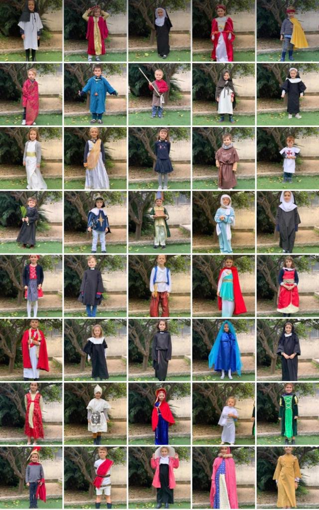 Cette journée d’exception, remplie malgré tout par les activités et apprentissages habituels, fournit aux enfants l’occasion de mieux connaître le saint dont ils portent le nom afin d’en parler à leurs camarades. Personnages du Nouveau Testament, martyrs des premiers siècles, rois et reines ou religieux, les élèves ont ainsi pu être témoins du fait que la sainteté traverse les siècles et ne cesse d’être actuelle.