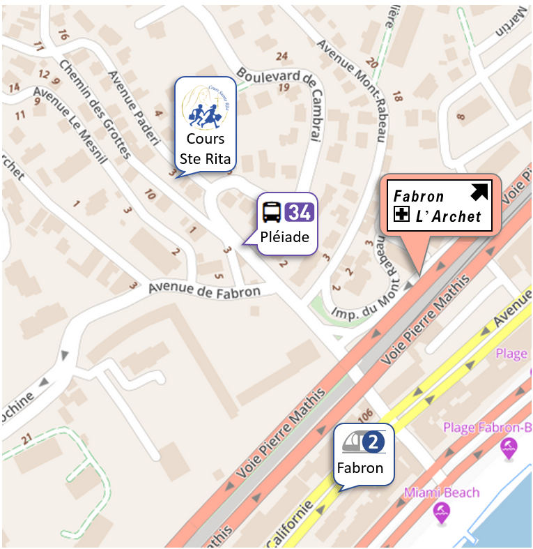 L’école se situe au 3 avenue Padéri, entre l’avenue de Cambrai et l’avenue de Fabron, à 200m de la sortie Fabron de la voie rapide et à 400m de l’arrêt Fabron de la ligne 2 du tramway.